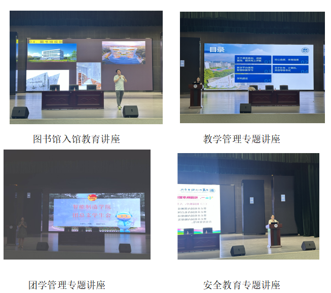 随后,党委委员、组织部部长熊辉俊同志、学工科长吴莉莎、团总支书记何陶、图书馆、教务处和安全处的老师为新同学们分别作了相关专题教育讲座。