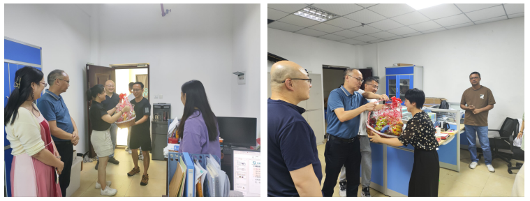 动物科技九游网页版·官方站入口班子领导成员一行先后前往了教学科办公室、各个教研室以及辅导员工作室等,在炎炎的夏日里送去关怀与清凉,为长期坚守在教育一线的教师们表示感谢。今年9月10日是我国第40个教师节,习近平总书记在全国教育大会上强调要实施教育家精神铸魂强师行动,加强师德师风建设,提高教师培养培训质量,培养造就新时代高水平教师队伍。学校党委委员、动科党总支书记熊辉俊表示,九游网页版·官方站入口党委和二级九游网页版·官方站入口党政干部高度重视教师培养工作,切实维护教师职业尊严和合法权益;全体教师要扎实迈进建成教育强国的宏图目标,以中国式现代化全面推进强国建设,坚持不懈用习近平新时代中国特色社会主义思想铸魂育人,解决好人民群众关于教育的急难愁盼问题。