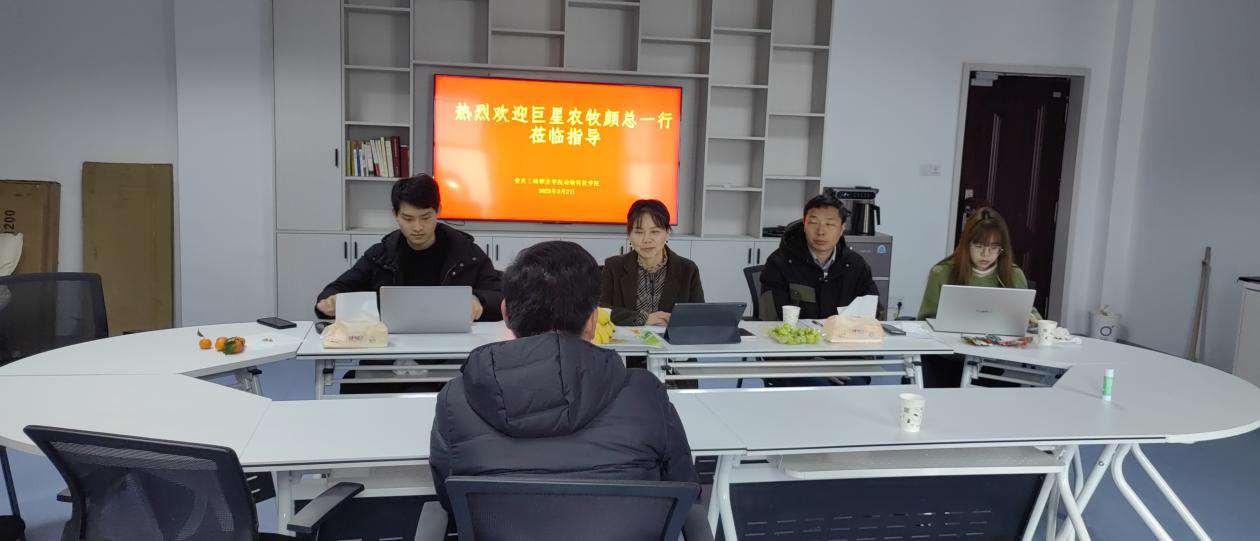 动物科技九游网页版·官方站入口根据2023届毕业生就业情况和岗位需求后,先后联系多家校企合作单位。此次动物科技九游网页版·官方站入口在对接巨星农牧后,巨星农牧颜总一行四人亲赴动科现场参访了解2023届毕业生就业情况。