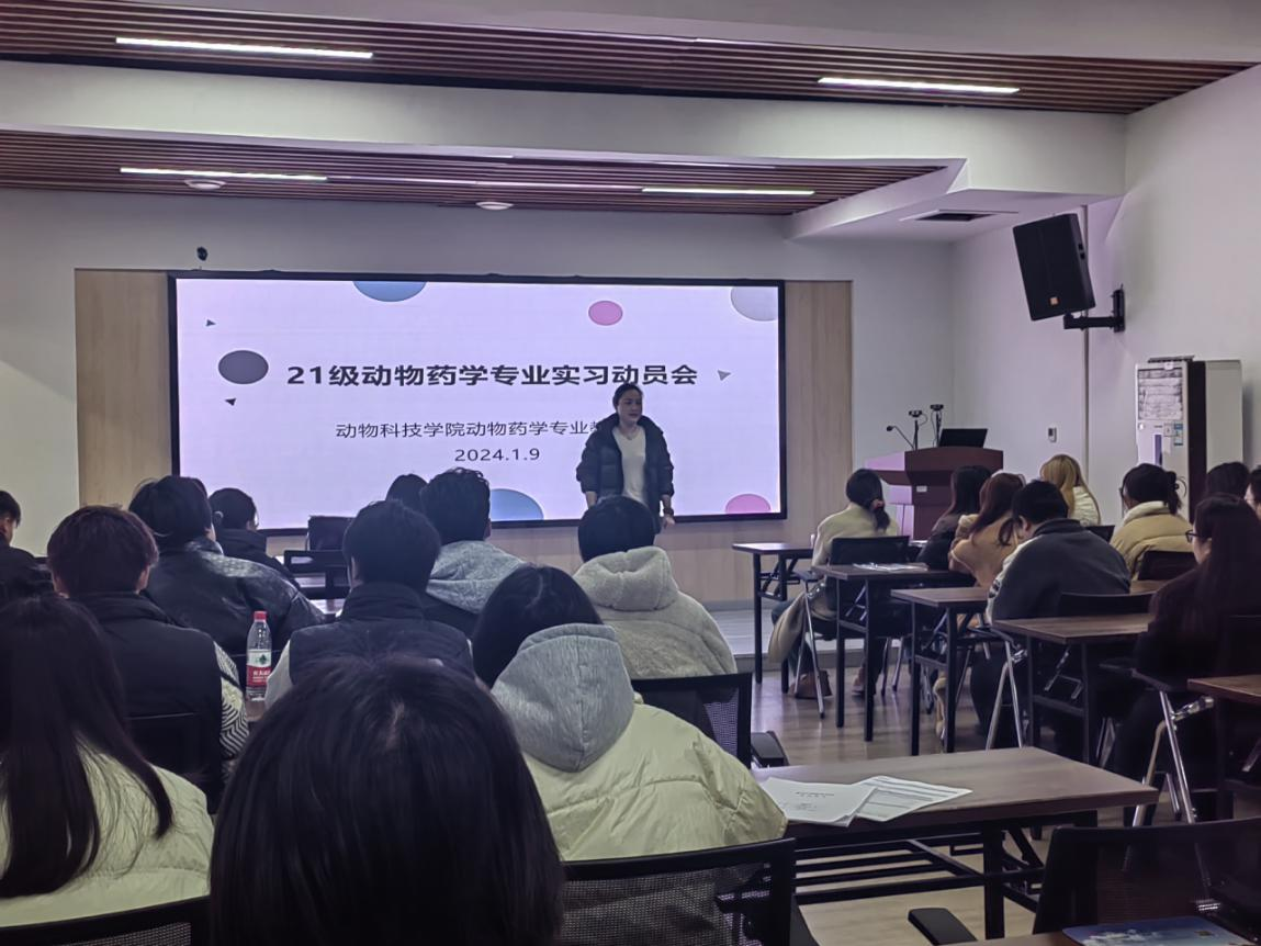 2024年1月9日,动物科技九游网页版·官方站入口动物药学教研室在学校就业中心举行了2021级动物药学专业实习动员会。本次会议由21级动物药学专业学子和动物药学教研室全体老师参加,动员大会由动物药学教研室主任赵婵娟老师主持。