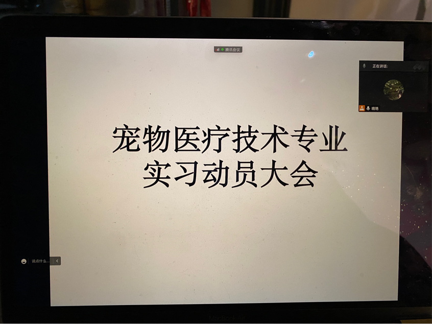 王老师指出,实习就业是专业教学培养过程中的重要环节,希望同学们利用好学校实习平台,认真完成好实习实训教学任务。同时王老师也回答了学生对于实习的一些问题,强调了实习过程中的安全问题等。并通过多个学生实习案例从不同视角给宠物医疗技术专业学生讲解了宠物医疗技术专业定位,如何成为一名合格的兽医综合性应用型高技能人才,如何通过岗位实习走出职业生涯第一步。教师们对专业学生的实习提出了殷切希望,希望大家能做好心理调整,从校园到社会的学习地方和身份的转变,能积极投入实习,充满热情的到岗在,提前做好实习计划,能学有所获。专业教研室各位老师对同学们实习进行安全教育与实习具体要求的提出!鼓励学子们奋力拼搏,抓住机遇,认真实习,学好本领,为大学生涯画上完美句号。