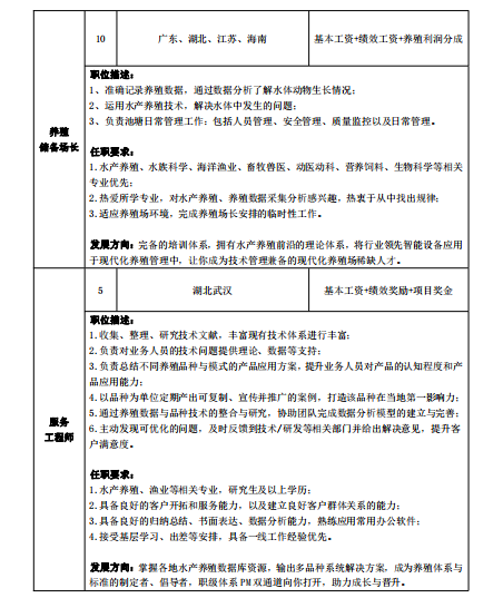公司重视人才发展,坚持“天生我材必有用”的用人理念,公司启智九游网页版·官方站入口针对员工发展规划制定专项人才培养计划,并面向行业从业人员(养殖户、技术人员、养殖场长等)提供专业的技术与管理培训、咨询等相关服务,推动水产行业的发展。优秀的成长型平台,助力每一位员工成为“技术与管理兼备”的复合型人才。