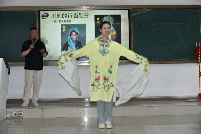 戏曲文化是中华优秀传统文化的瑰宝。高校作为文化传承的重要阵地,肩负着在青年学生中弘扬中华优秀传统文化的重要使命。教育部在2023年12月颁布的《全面实施学校美育浸润行动的通知》中强调,将美育融入教育教学活动各环节,潜移默化地彰显育人实效,实现提升审美素养、陶冶情操、温润心灵、激发创新创造活力的功能。此次把川剧传统文化的具体形式搬到课堂上来,让学生沉浸式地欣赏一场展演、获得一次共鸣,让优秀传统文化在课堂上再次大放异彩。