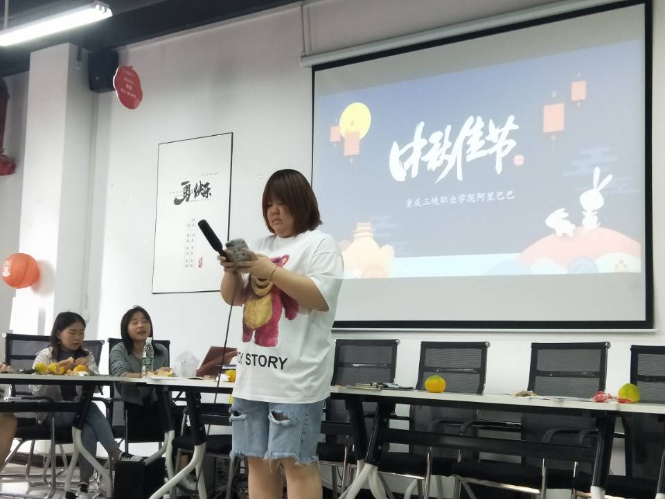 古有“举头望明月,低头思故乡”的牵挂,“一尊环醚江月,人生如梦”的顿悟,更有“明月几时有,把酒问青天”的豪迈。月亮,从古至今都是人们表达思想情感的载体。实时中秋月正圆,对于大多数异地同学来说,家虽遥远,心却并不孤单。此次活动,温暖了大家的眼角眉梢,也牵起了大家的嘴角。在阿里实训基地,汇聚了四面八方的欢声笑语,聚齐了五湖四海的秋思乡情。阿里基地——这个温暖的大家庭让这些每天忙于学业和实训的同学们度过一个团团圆圆的美好佳节,感受“但愿人长久,千里共婵娟”的美好愿景。