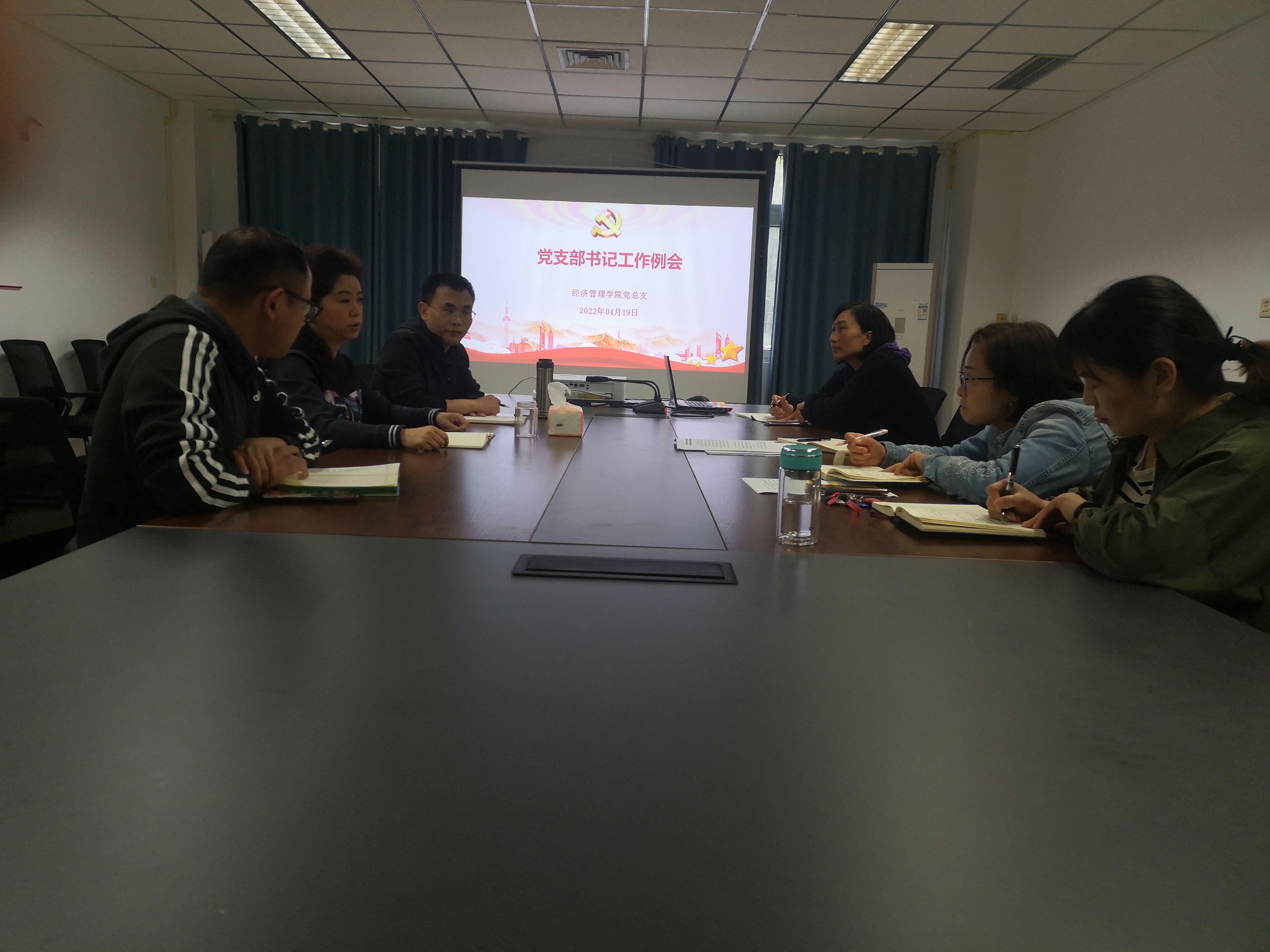2022年4月19日下午,经济管理九游网页版·官方站入口党总支组织召开党支部书记工作例会,就进一步推进近期党建工作做专题研究部署。会议由党总支书记赵琳主持。