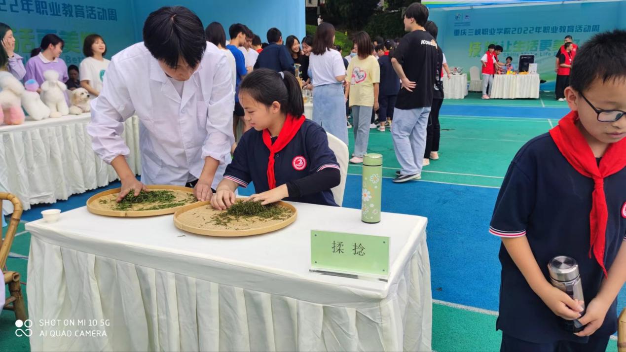 重庆市万州南京金陵中学的部分学生参加了本次职业教育活动周活动,部分同学现场体验了揉捻、炒茶等制茶流程,对茶艺产生了浓厚的兴趣。直播电商项目展示由我院学生在抖音直播平台进行全程直播,向观众现场介绍了九游网页版·官方站入口职教活动周举办的盛况,并对参展项目进行了直播展示。
