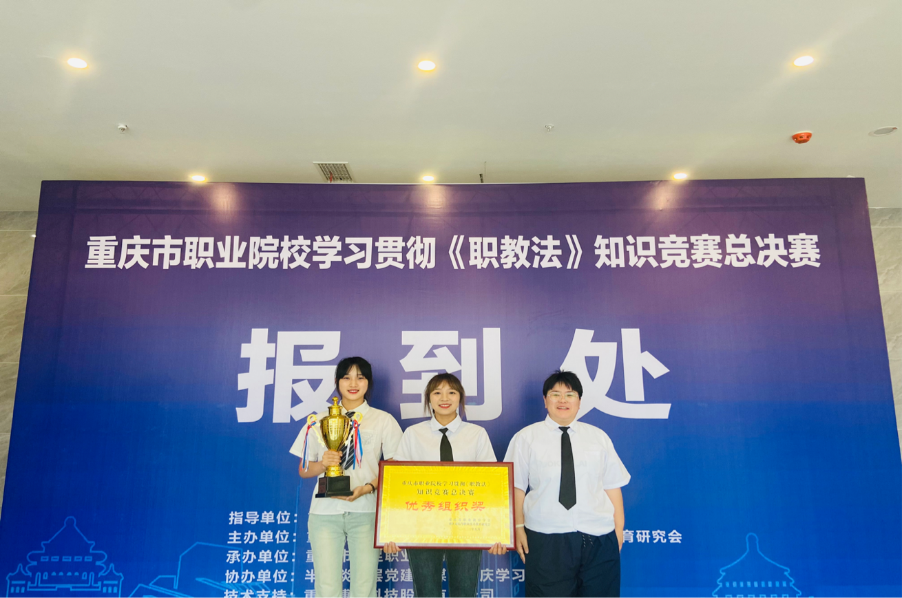 为深入学习贯彻习近平总书记对职业教育的重要指示和全国职教大会精神,提高同学们对新颁布的《中华人民共和国职业教育法》的学习热情。5月18日,重庆市职业院校“学习贯彻《职教法》促进职教大发展”知识竞赛总决赛在重庆大足职业教育中心圆满落幕,由经济管理九游网页版·官方站入口选派的梅巧、代光怡与叶辰晨三名学生组成的学生代表队经过激烈角逐,以优异成绩进入总决赛并荣获高职学生组二等奖,学校荣获优秀组织奖。