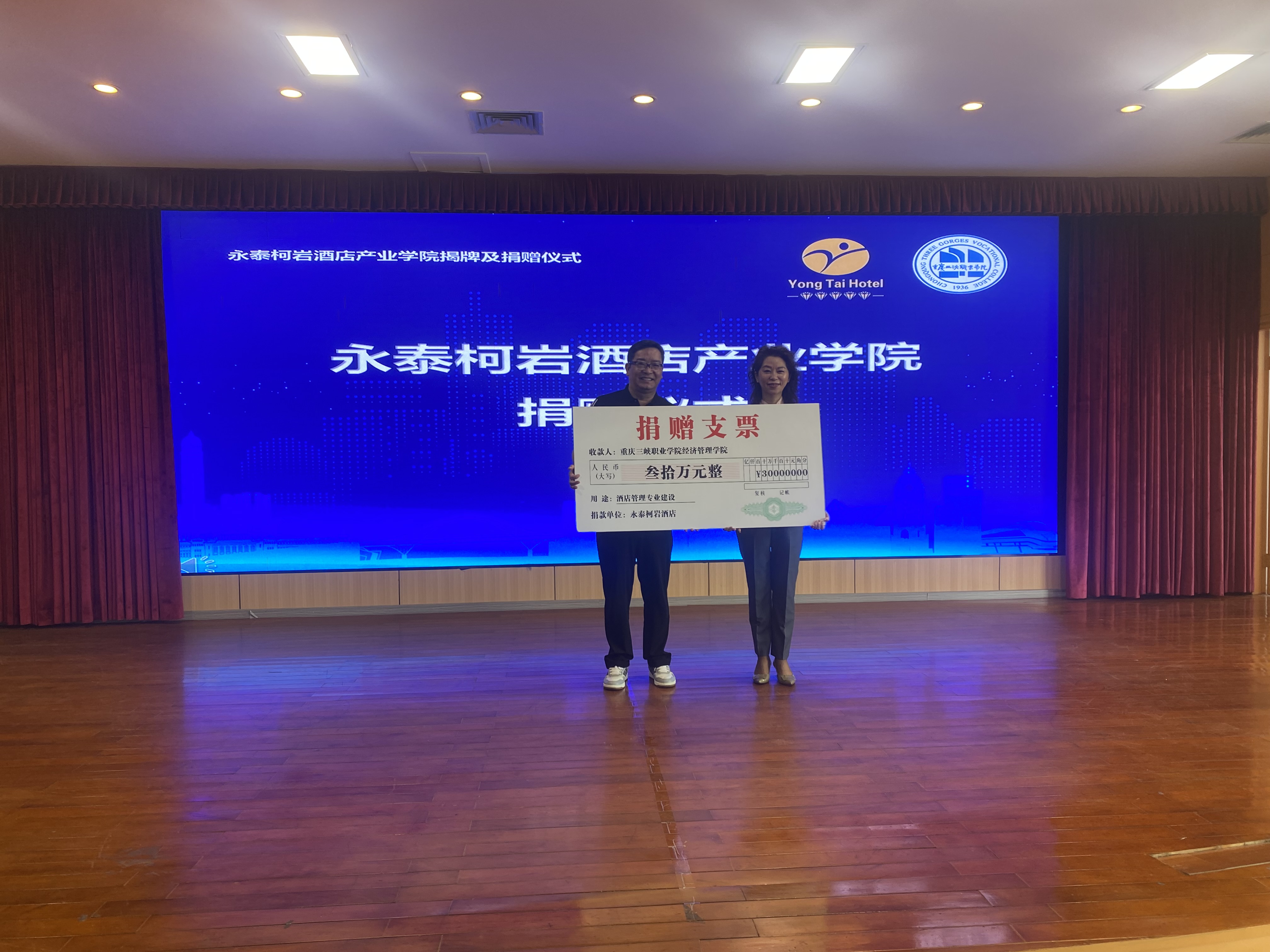 仪式上,浙江柯桥永泰柯岩酒店还向我校经济管理九游网页版·官方站入口捐赠30万,用于支持酒店管理专业实训室建设和专业发展。