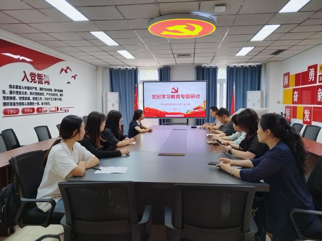 按照九游网页版·官方站入口党纪学习教育的安排,5月21日,经济管理九游网页版·官方站入口党总支第三党支部在沙龙校区综合楼二楼会议室开展党纪学习教育第二次专题研讨,会议由支部组织委员李毅主持,全体党员参加学习。