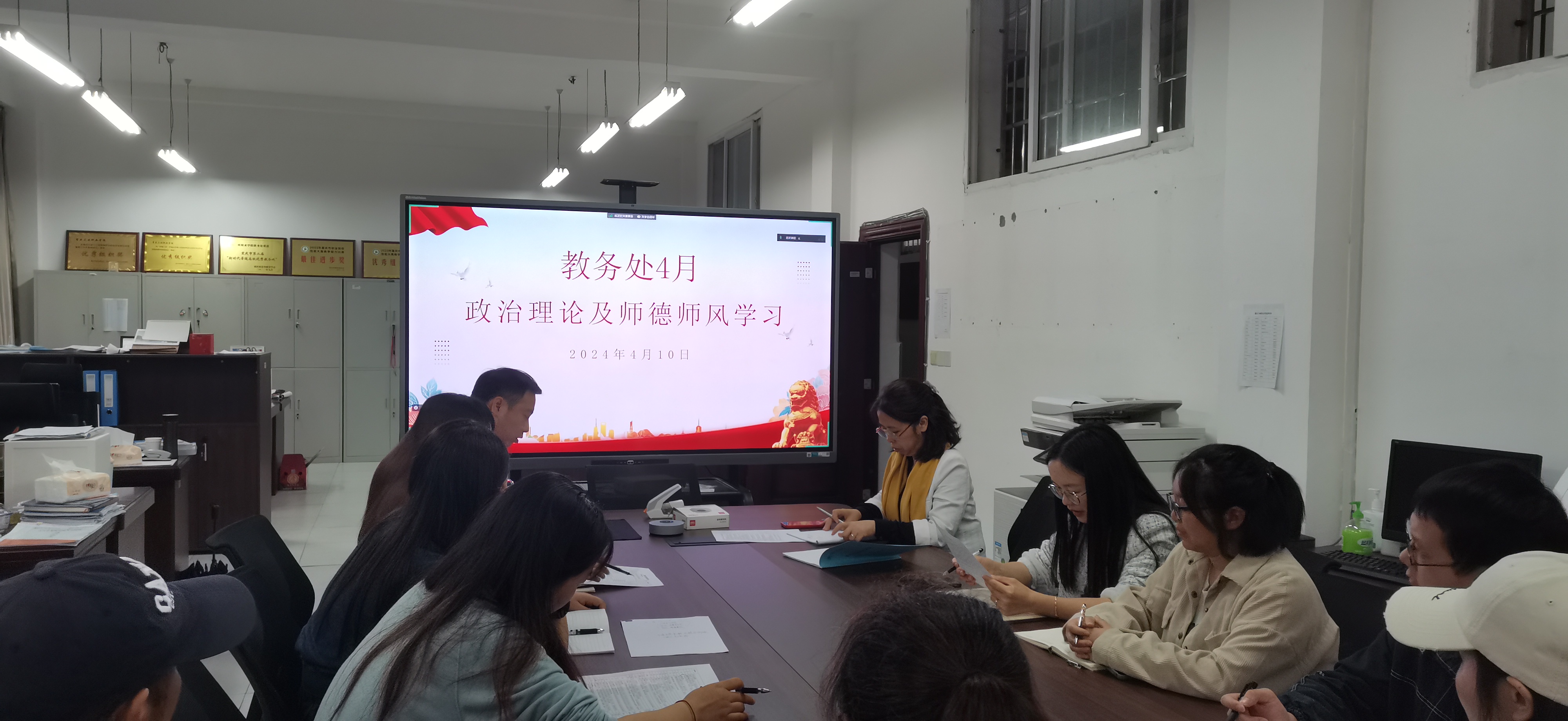 根据学校教职工政治理论学习安排以及师德师风建设工作有关部署。4月10日下午,教务处在农林楼101会议室集中开展了4月教职工政治理论和师德师风集中学习会议,教务处及图书馆教职工18人参加会议,本次会议由杨俭副处长主持领学。