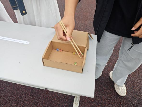 活动在主持人的介绍中拉开序幕。在比赛环节,每个小组争分夺秒闯关。在第一关“红歌猜猜猜”中,熟悉的旋律响起勾起大家的记忆,率先答对三题红色歌曲的小组则顺利通关。在第二关“历历在目”中,各参加小组完成队友互背与夹弹珠任务后获得信息内容,通过趣味性的方式让大家一起走进了解青年榜样人物的事迹。在第三关“脑力王者”中,完成挤气球任务后抽签答题。在参加完比赛环节后,让大家进入体验环节,通过填色共“绘”青春,在书签上填写寄语共“话”青春。活动中,我校青年学子朝气蓬勃、昂扬向上的风采得到充分展现。