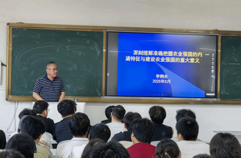 李炯光校长在授课中通过结合国内外典型案例,让农业强国的概念具象化。同时,深入剖析了农业强国与农业现代化、乡村振兴战略的紧密关系,强调农业现代化是建设农业强国的路径,乡村振兴战略是实现农业强国的重要抓手,三者相辅相成。此外,还结合学校的涉农专业特色,鼓励同学们将个人成长发展与农业强国建设紧密联系起来,积极投身到乡村振兴和农业现代化的伟大实践中。在课堂上,学生认真聆听。不少学生表示,此次思政课让他们对农业强国建设有了更为清晰的认识,深刻感受到作为新时代大学生肩负的责任与使命。