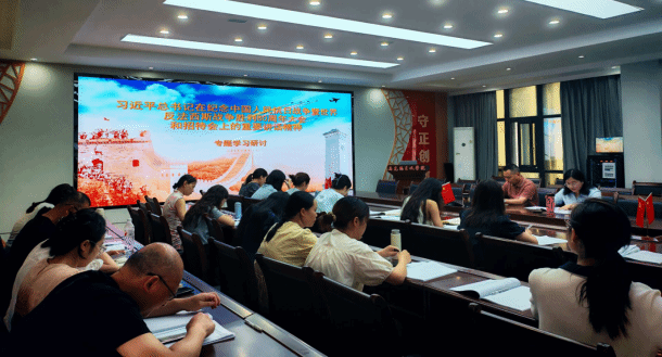 9月9日上午,《思想道德与法治》教研室在奥训楼403开展习近平总书记在纪念中国人民抗日战争暨世界反法西斯战争胜利80周年大会和招待会上的重要讲话精神、在《求是》杂志上发表的《弘扬伟大抗战精神,向着中华民族伟大复兴的光辉彼岸奋勇前进》重要文章精神专题学习研讨,马克思主义九游网页版·官方站入口院长姜荣、《思想道德与法治》教研室全体教师、部分其他教研室教师参加。