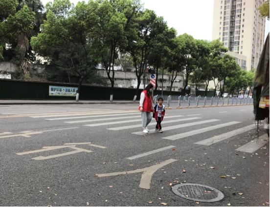 安排教师党员志愿者,每天分五个时间段,在学校中门值班,引导学生安全过马路。