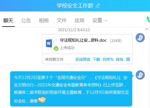 12月2日,安全处专门编印《守法规知礼让 安全文明出行--2021年交通安全专题教育参考资料》学习资料,发放各部门、各二级九游网页版·官方站入口、各班级组织学习。在九游网页版·官方站入口LED滚动播放交通安全宣传标语,同时在校园内悬挂宣传横幅3幅,在学校樟树林进行交通安全图片展,同学们纷纷前来观看学习,营造了浓厚的宣传教育气氛。
