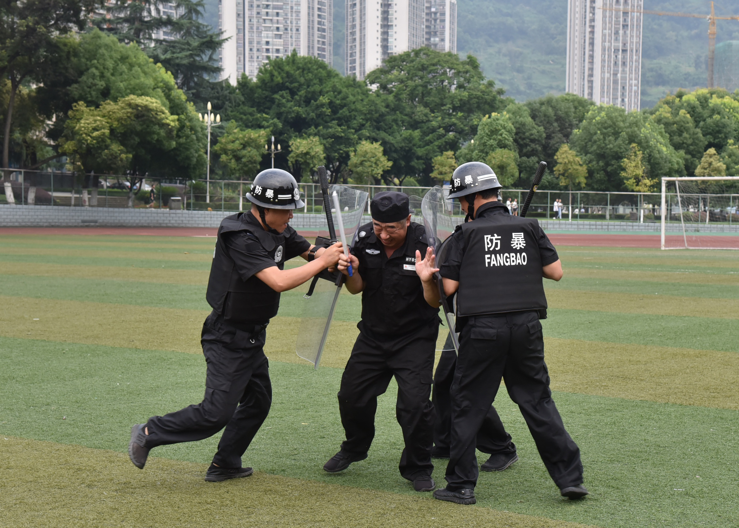三是防恐防暴演练。队员们在“敌人”面前无所畏惧,勇敢地与恶势力作斗争,充分展示出保安队伍的战斗力。