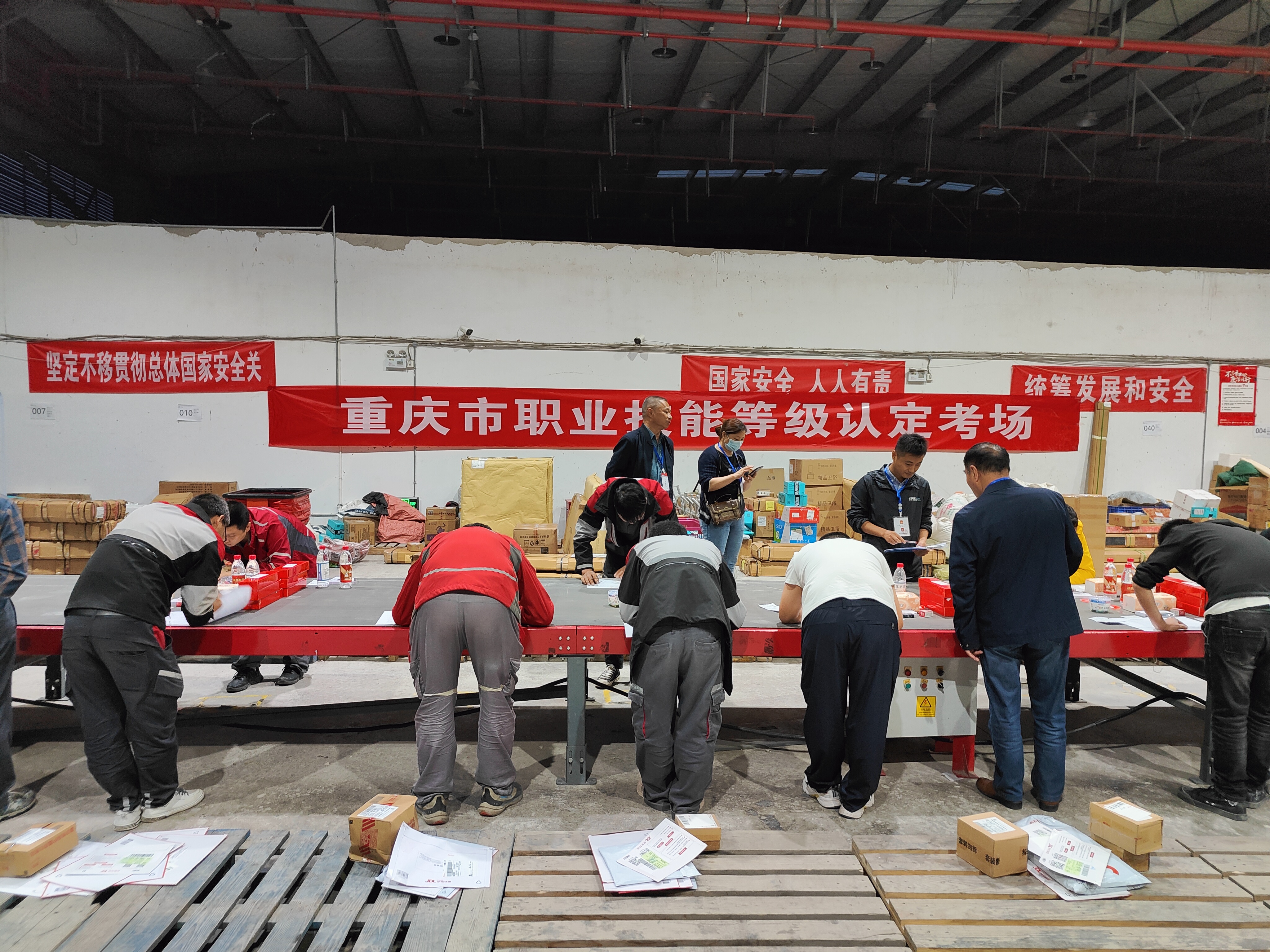 此次等级评价认定工种为快递员五级,共计50人。理论考场和实操考场分别设在丰都县就业和人才服务局6楼培训教室和丰都县公路港物流园 2 号库7-8仓京东快递转运站。考评期间,丰都县人力资源和社会保障局特派工作人员到现场进行巡视指导,现场督查,深入查看了理论和技能考试现场,对学校严谨的工作作风、规范的操作流程等方面给予了充分的肯定。