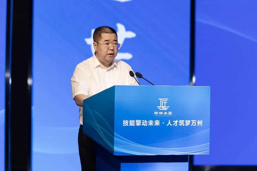 万州区人力资源和社会保障局党委书记、局长雷传亮致辞,表示欢迎大家出席重庆第二届三峡人才节,感谢各方支持。技能人才是中国制造和创新的基础。区人力社保局在区委、区政府领导下,推动技能人才跨越式发展,创建多个高技能人才培训基地和大师工作室。我们将继续深化技能培训和竞赛,为经济高质量发展提供坚强保障。预祝大赛成功,选手取得佳绩!