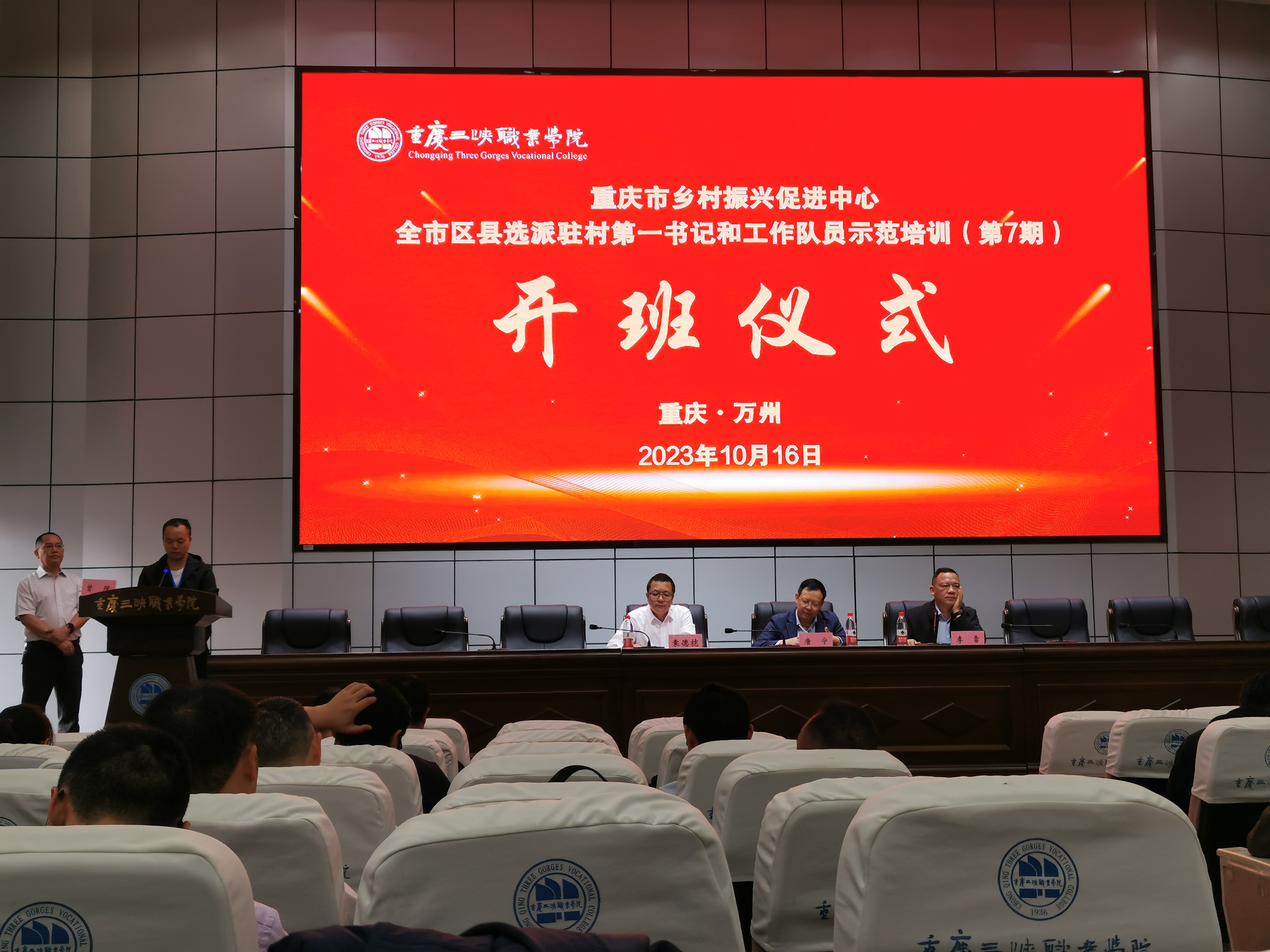 2023年10月16日上午,重庆市乡村振兴促进中心全市区县选派驻村第一书记和工作队员示范培训班第7期在我院博雅楼学术报告厅举行了隆重的开班仪式。