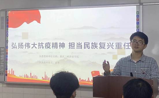 14日,汽车工程九游网页版·官方站入口党总支第二支部党员涂彬老师为同学们录制讲授了《弘扬伟大抗疫精神 担当民族复兴重任》思想政治教育课程;第二党支部入党积极分子谭智文老师利用课间活动时间积极为同学教授心理健康方面的知识。