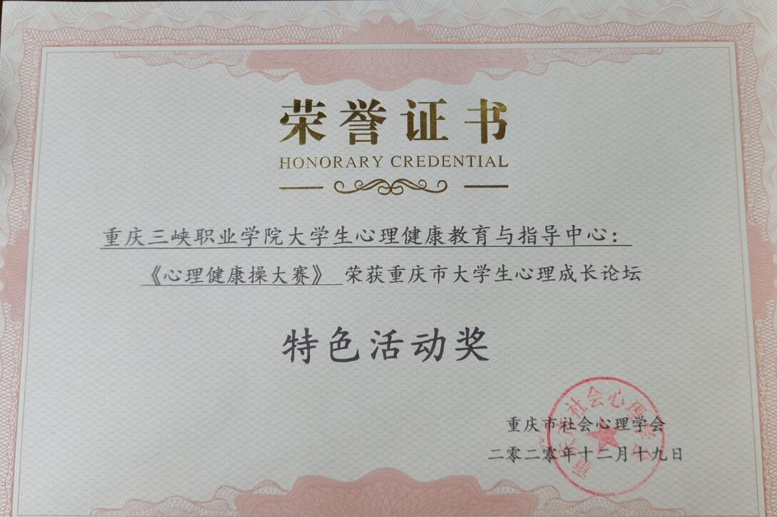 我校“心理健康操”荣获重庆市大学生心理成长论坛特色活动奖品
