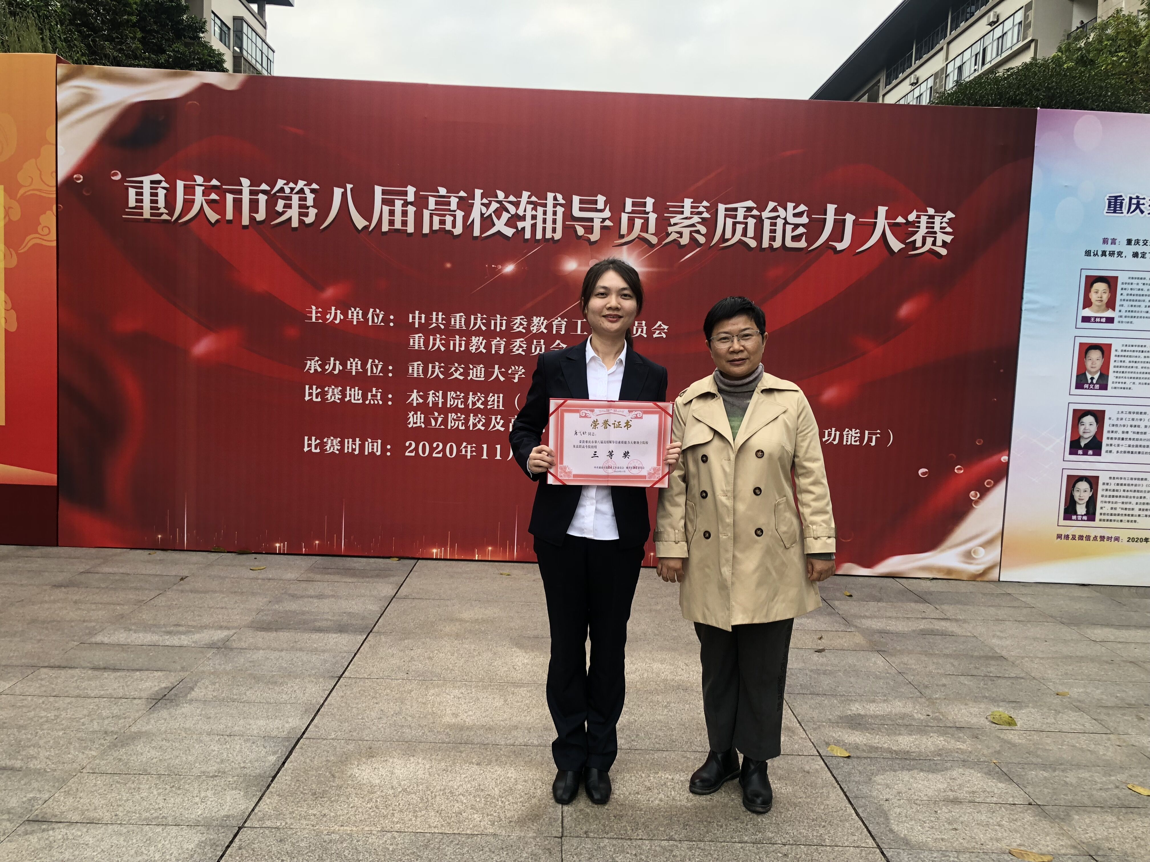 11月18日至20日,重庆市第八届辅导员素质能力大赛在重庆交通大学举办,我校辅导员唐弋钦从44名选手中脱颖而出,以总分第十名的成绩获得独立院校及高职高专院校组三等奖。