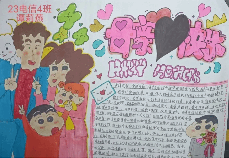 五月,母亲节来临之际,智能制造九游网页版·官方站入口团总支学生会举办的“春晖绘情,慈心传韵”感恩母爱主题手抄报大赛圆满结束。活动期间,同学们积极参与,用手中画笔诠释对母爱的理解。