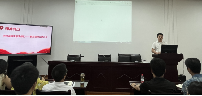 第三党支部纪检委员杨治刚同志以国家最高科学技术奖获得者李德仁:巡天问地 助力建设“遥感强国”;测绘遥感学家李德仁——精准测绘大地山河为典型案列开展了师德师风专题警示教育。