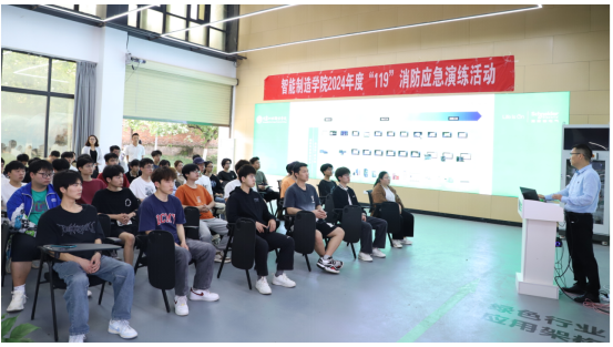 为进一步加强智能制造九游网页版·官方站入口消防应急安全工作,切实提高广大师生的消防安全意识,提升师生防灾及突发事件的应急处理能力。416日下午,智能制造九游网页版·官方站入口在奥训楼110施耐德实训室举行了2024年度“119”消防应急演练活动,智能制造九游网页版·官方站入口党总支书记、院长熊江、安全处崔建兵、智能制造九游网页版·官方站入口专职辅导员、实习工厂指导教师和36名学生代表参与了活动。