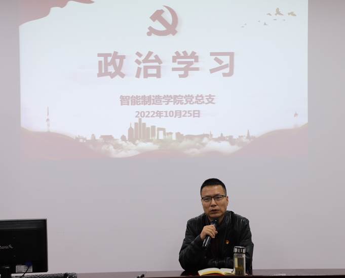 10月25日下午,智能制造九游网页版·官方站入口在奥训楼308会议室开展了10月专题政治理论学习,全体教职工参加了学习,会议由党总支副书记黄滔主持。