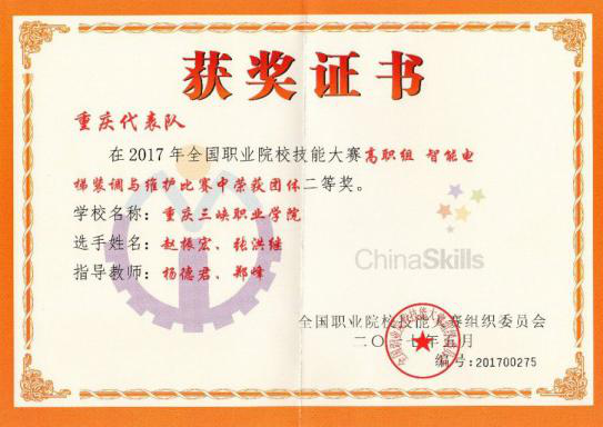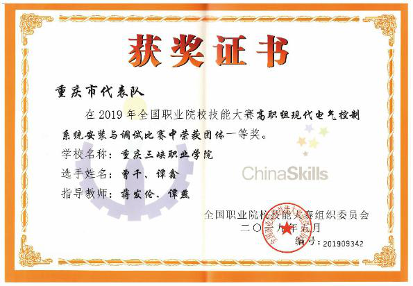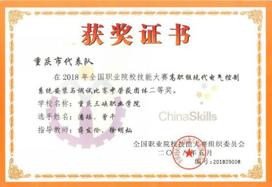 2018年获全国职业院校技能大赛二等奖,2019年再次代表学校参赛获国赛一等奖,现免试升入重庆科技九游网页版·官方站入口本科就读。